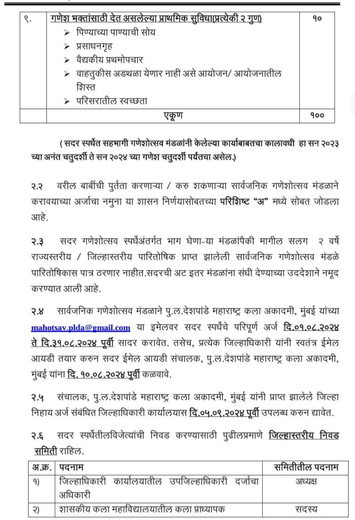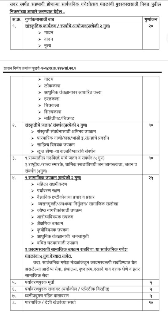 बारामती नायब तहसीलदार पूनम दंडिले यांनी सांगितले 2024 च्या गणेश उत्सवात सहभागी होणाऱ्या राज्यातील सर्वात उत्कृष्ट सार्वजनिक गणेश उत्सव मंडळांना शासनाकडून पुरस्कार देण्याची स्पर्धा आयोजित करण्यात आली आहे. यामध्ये प्राप्त झालेल्या शासन निर्णयामध्ये सांगितल्याप्रमाणे लोकमान्य टिळकांनी जनजागृतीसाठी सार्वजनिक गणेशोत्सव आयोजित करण्याची प्रथा सुरु केली. सार्वजनिक गणेशोत्सवात जास्तीत जास्त सार्वजनिक गणेशोत्सव मंडळांनी सहभागी व्हावे, याकरीता सन २०२३ मध्ये राज्यातील सर्वोत्कृष्ट सार्वजनिक गणेशोत्सव मंडळांना पुरस्कार देण्यात आले होते. त्याच धर्तीवर सन २०२४ च्या गणेशोत्सवात सहभागी होणा-या राज्यातील सर्वोत्कृष्ट सार्वजनिक गणेशोत्सव मंडळांना पुरस्कार देण्यात येणार आहे असे दंडिले यांनी सांगितले.